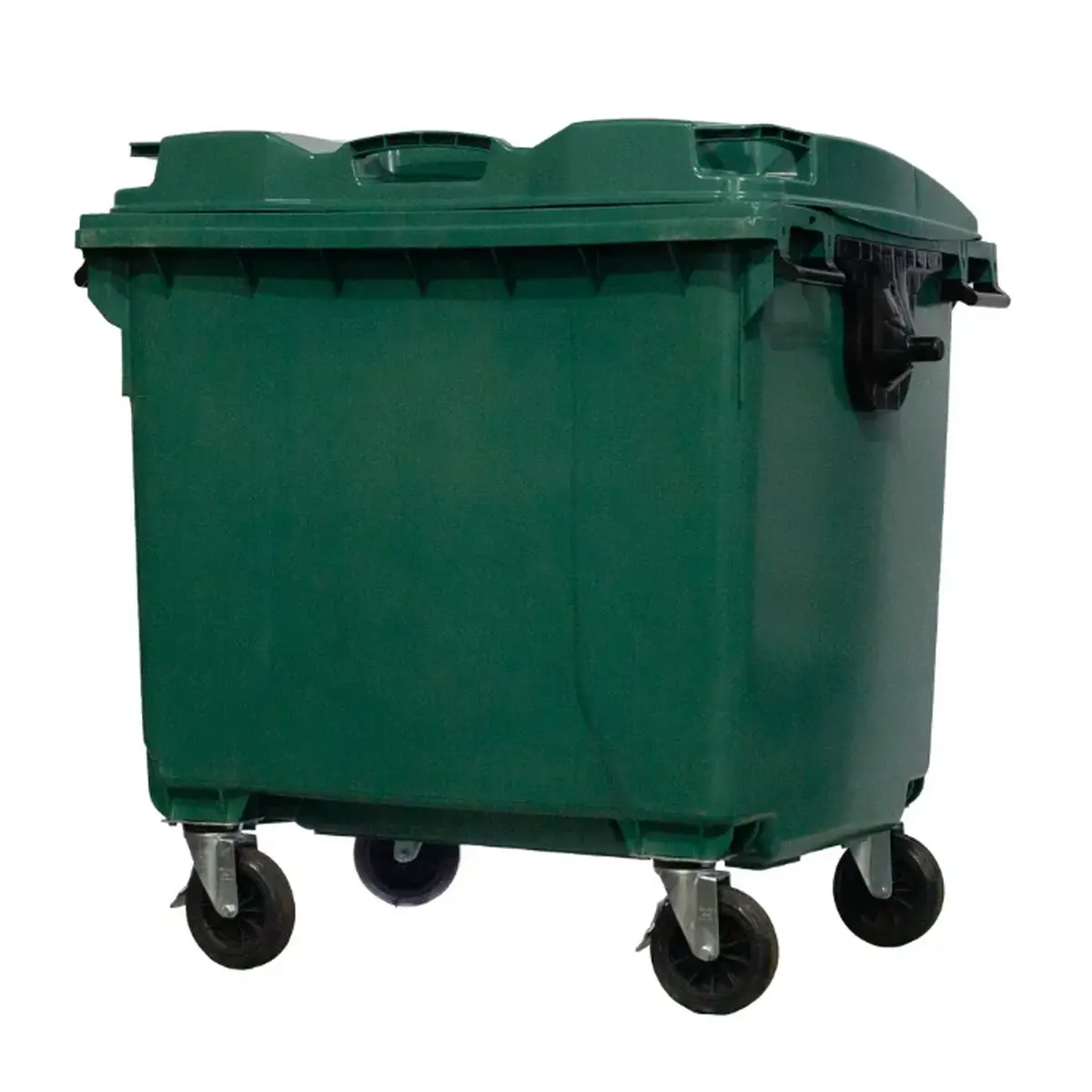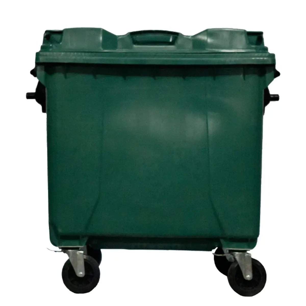 Container de lixo com capacidade de 1000 litros, fabricado em polietileno de alta densidade (PEAD) ou polipropileno (PP), oferecendo alta resistência, durabilidade e segurança.